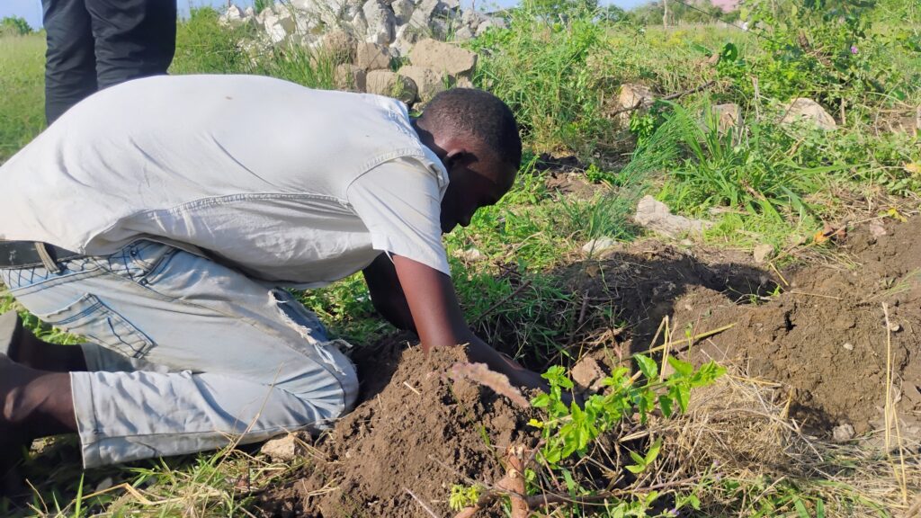 We also prepare our own nutrient-rich soil by mixing organic materials such as eggshells, which are high in calcium and help improve soil fertility.